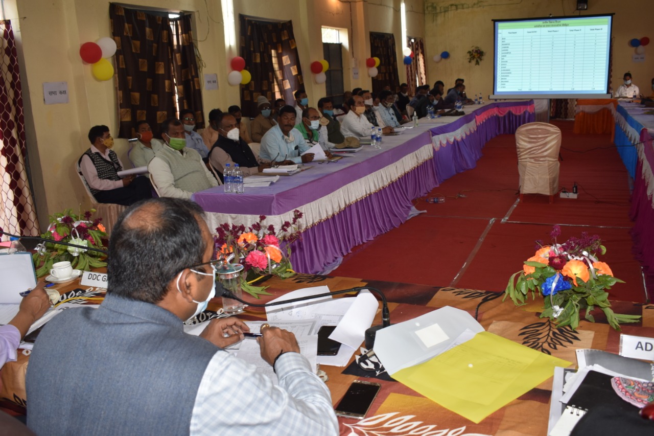 जनप्रतिनिधियों के साथ बैठक के पश्चात जिलाधिकारी ने ज़िला स्तरीय पदाधिकारी एवं प्रखंड स्तरीय पदाधिकारी के साथ बैठक करते हुए मुख्य रूप से जल जीवन हरियाली के विभिन्न अवयवों, वृक्षारोपण, सरकार के सात निश्चय कार्यक्रम अंतर्गत ग्रामीण नल जल योजना, पक्की नाली गली, पीएचइडी द्वारा पेयजल योजना, शौचालय निर्माण एवं लाभुकों को भुगतान, लोक शिकायत निवारण अधिकार अधिनियम, मनरेगा योजना, प्रधानमंत्री आवास योजना सहित अन्य योजनाओं का कोच प्रखंड में स्थिति की समीक्षा की गई।