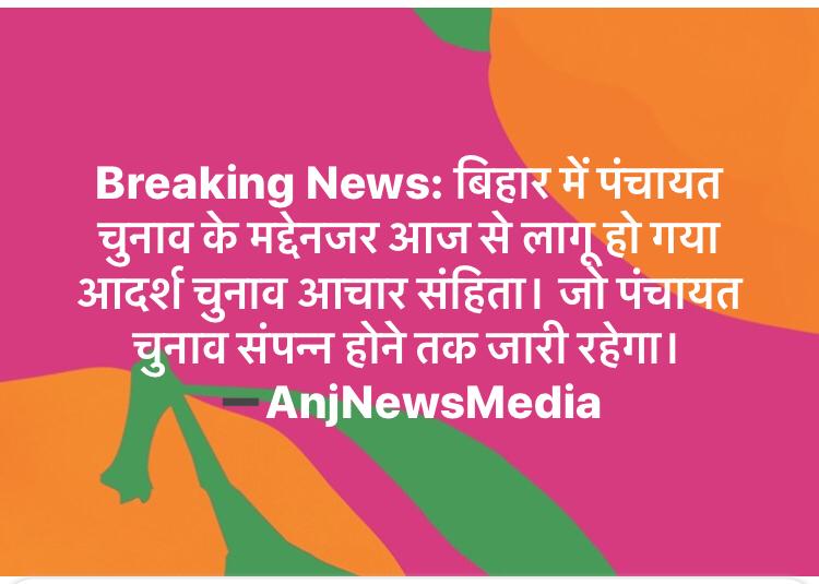 बिहार में पंचायत चुनाव की आधिकारिक घोषणा कर दी गई है । राज्य निर्वाचन आयोग ने पंचायत चुनाव 2021 की घोषणा कर दी। आयोग के अध्यक्ष दीपक प्रसाद ने पंचायत चुनाव के बारे में जानकारी देते हुए कहा प्रत्येक जिले में 10 चरणों में होंगे चुनाव।