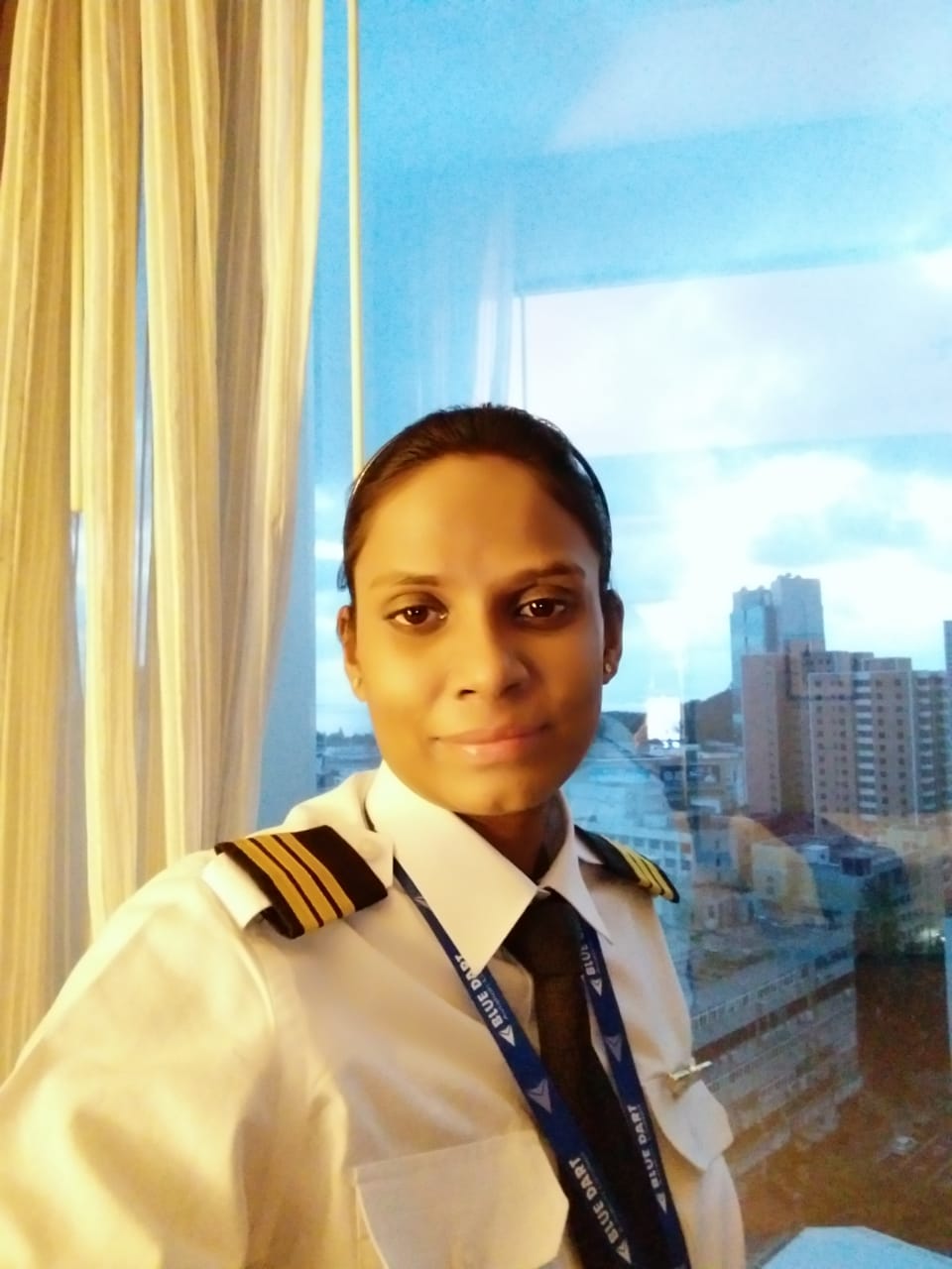 धैर्य से आकाश की हवा में वह कामयाब हुई। दृढ़-संकल्प तथा संयम ये दोनों ही हवाई उड़ान के पायलट के लिए अहम होते हैं।