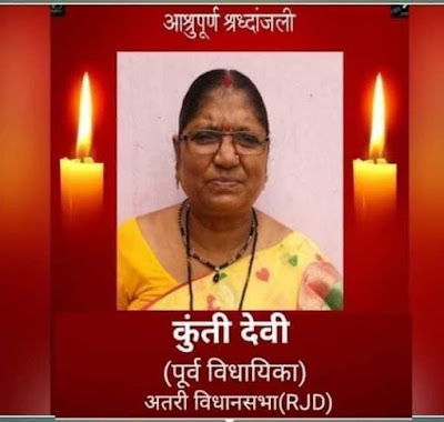 पूर्व विधायक राजेन्द्र- कुंती देवी के शोकाकुल पुत्र एवं अतरी विधानसभा के विधायक अजय यादव उर्फ रंजीत यादव ने बताया मेरी मां काफी दिनों से किडनी रोग से ग्रसित थीं। उन्हें डायलिसिस पर रखा गया था। एक दिन बीच करके उनका डायलिसिस होता था।