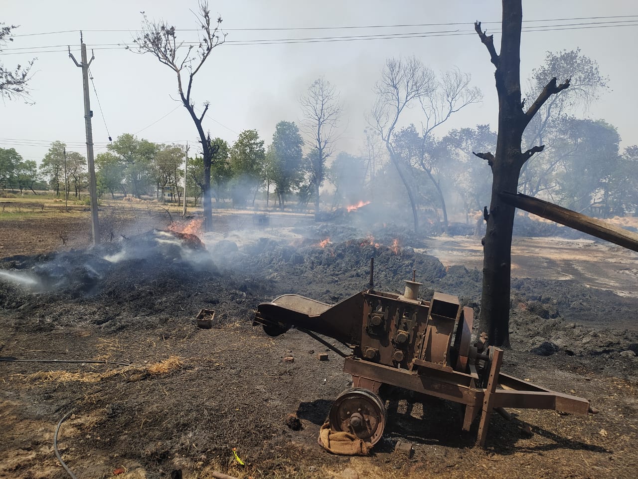 वजीरगंज के इटवा में किसान के खलिहान में अचानक बिजली की शॉर्ट सर्किट से लगी आग, अनाज सहित ट्रैक्टर हुआ जल कर ख़ाक